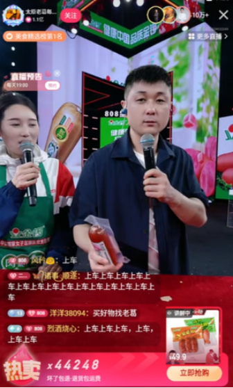 这种“品牌直供+主播补贴”的模式,既延续了太原老葛在助农直播中“源头好物直达百姓”的经验,也契合金锣“食为天”的品牌理念。金锣相关负责人表示,与太原老葛的合作是品牌深耕下沉市场的重要布局,通过主播的影响力,让优质民生产品走进更多家庭,真正实现“品质生活不贵买”。