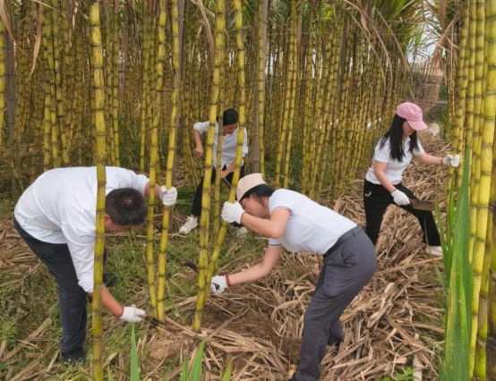 江门广雅学校作为扎根新会、深耕教育的本土学校,始终心系乡土、积极践行社会责任。在得知蔗农困境后,学校迅速响应助农倡议,组织10多名教职工代表奔赴双水镇鱼冲村。在蔗田里,大家分工明确、干劲十足,砍蔗、捆扎、搬运,现场一片热火朝天的劳动景象。此次,学校爱心认购了1.7吨新鲜黄皮甘蔗,并且建立了每周常态化采购机制,以持续的实际行动为本土农户纾困增收。